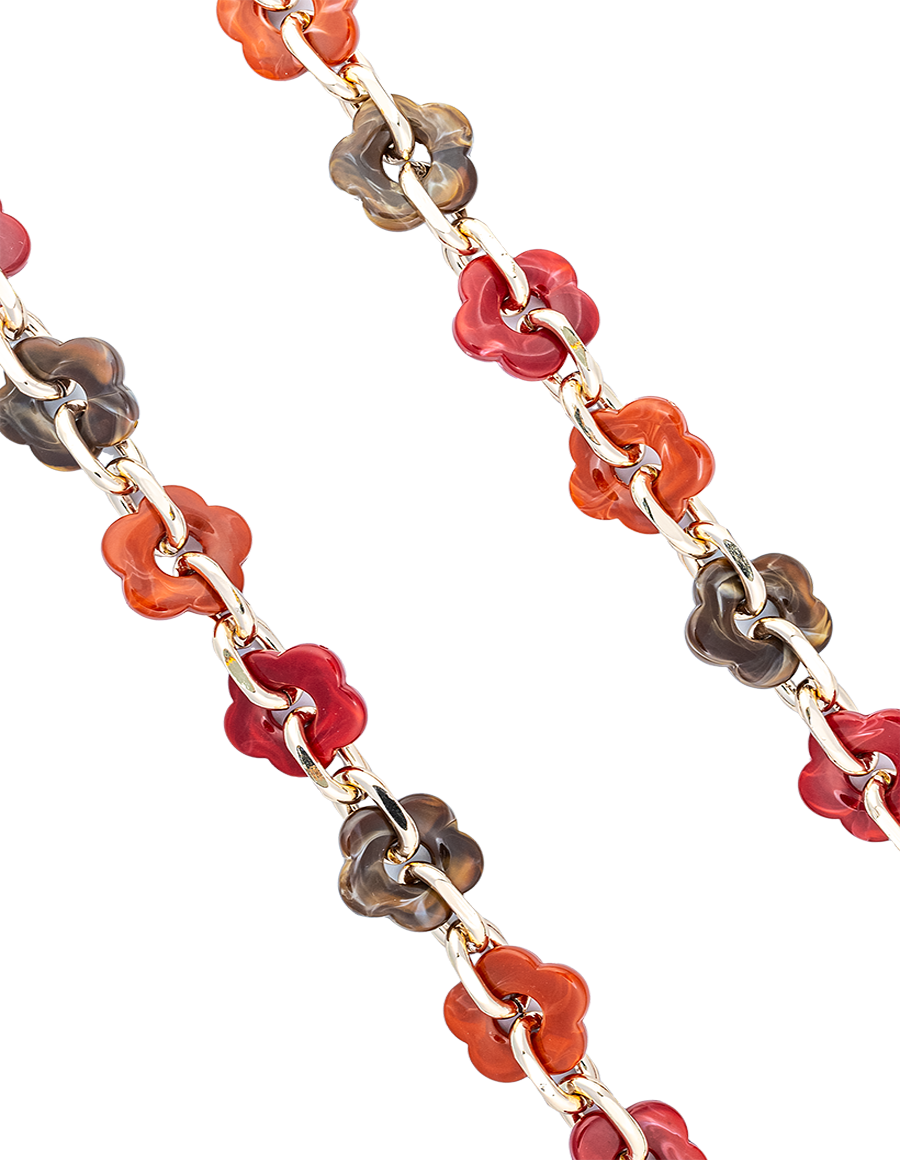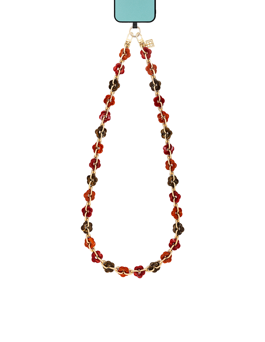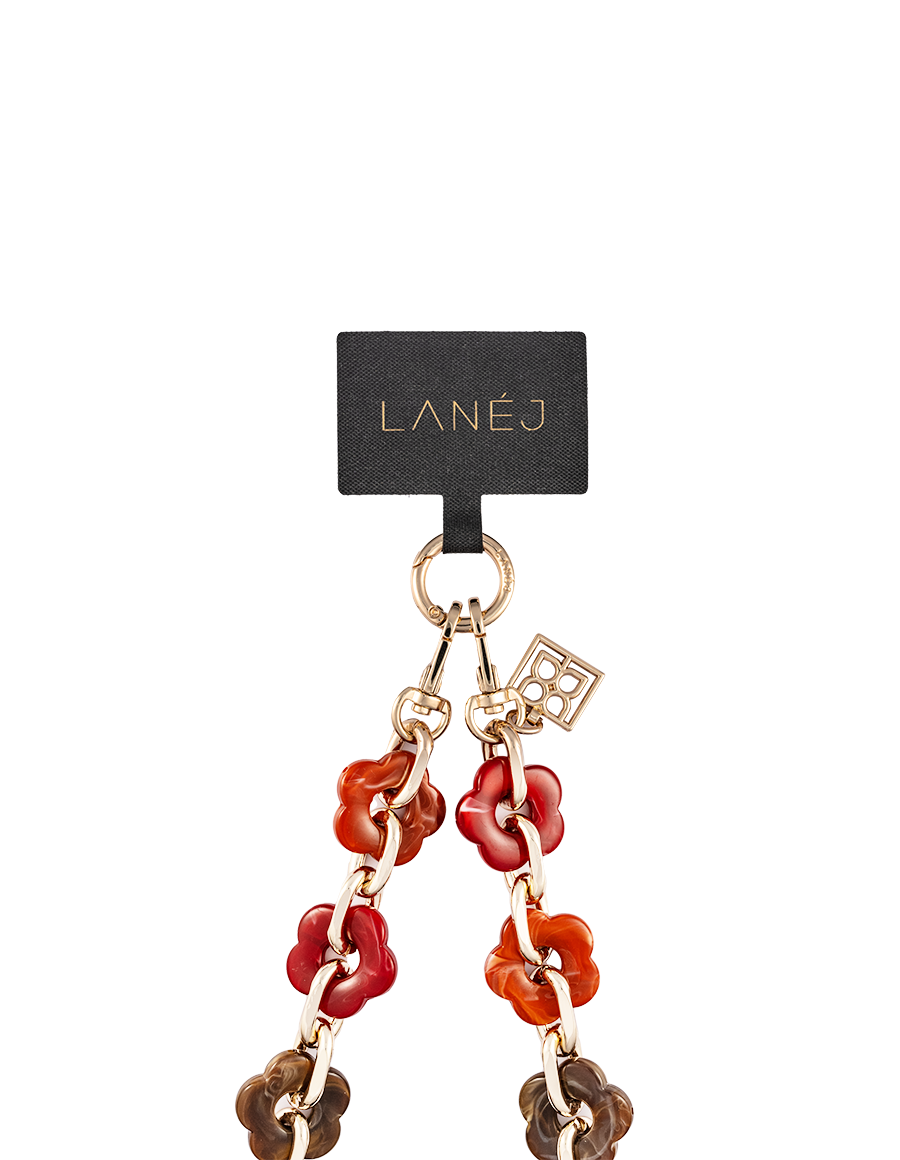 Elevate your everyday style with the LANÉJ Chain, a bold yet refined accessory crafted for versatility and chic functionality. This stylish chain features stunning marbled flower-shaped resin links, seamlessly connected by a durable gold-tone chain.