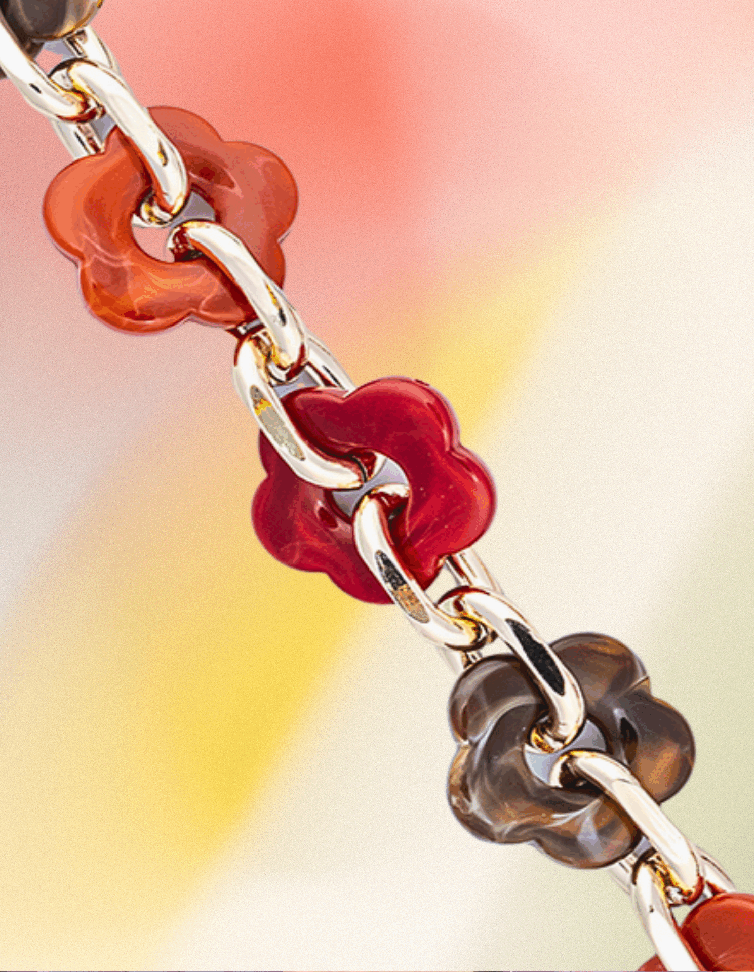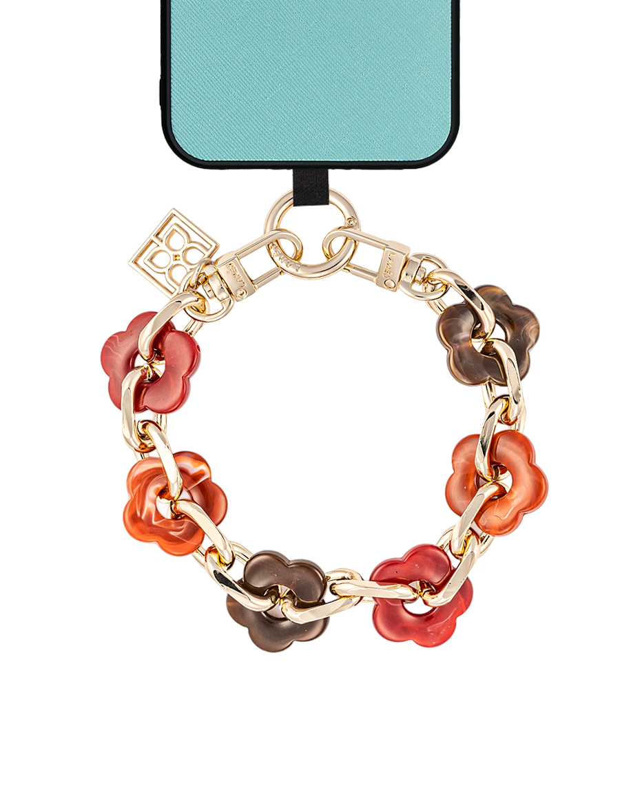 Add a touch of luxury and playful charm to your daily essentials with the LANÉJ Wristlet— a stylish multifunctional accessory designed to keep your phone close or to add charm to your bag! Crafted with eye-catching floral resin links and premium gold hardware, this wristlet is the perfect blend of elegance and function.