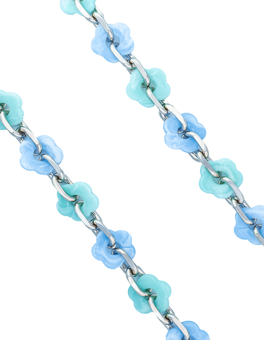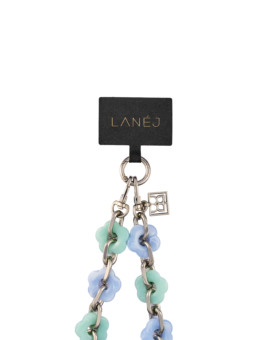 Elevate your everyday style with the LANÉJ Chain, a bold yet refined accessory crafted for versatility and chic functionality. This stylish chain features stunning marbled flower-shaped resin links, seamlessly connected by a durable gold-tone chain.