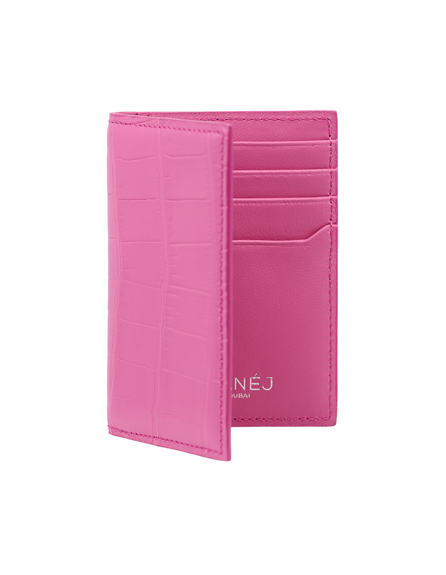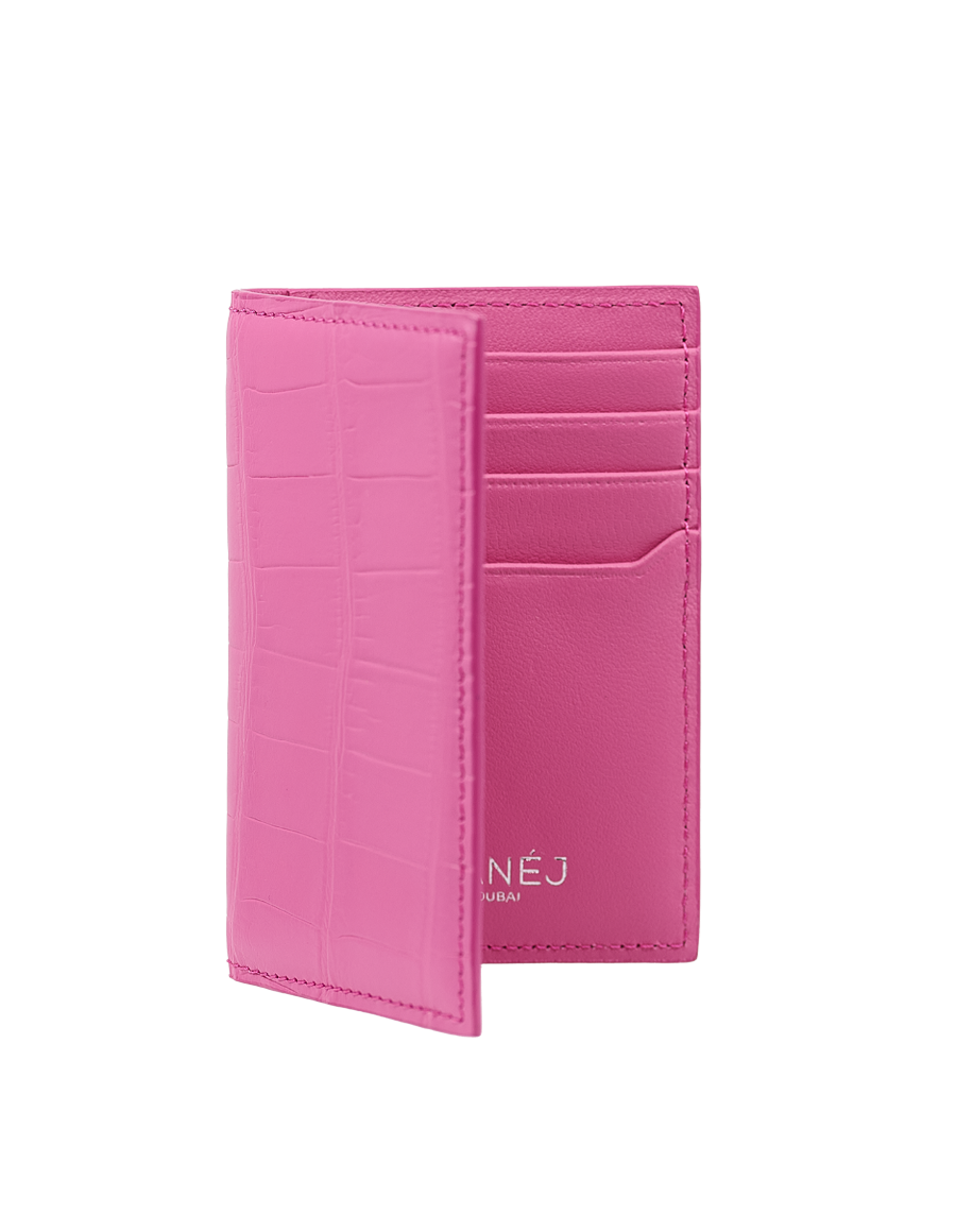 Bubble Gum Matte Crocodile Bi-Fold Card Holder