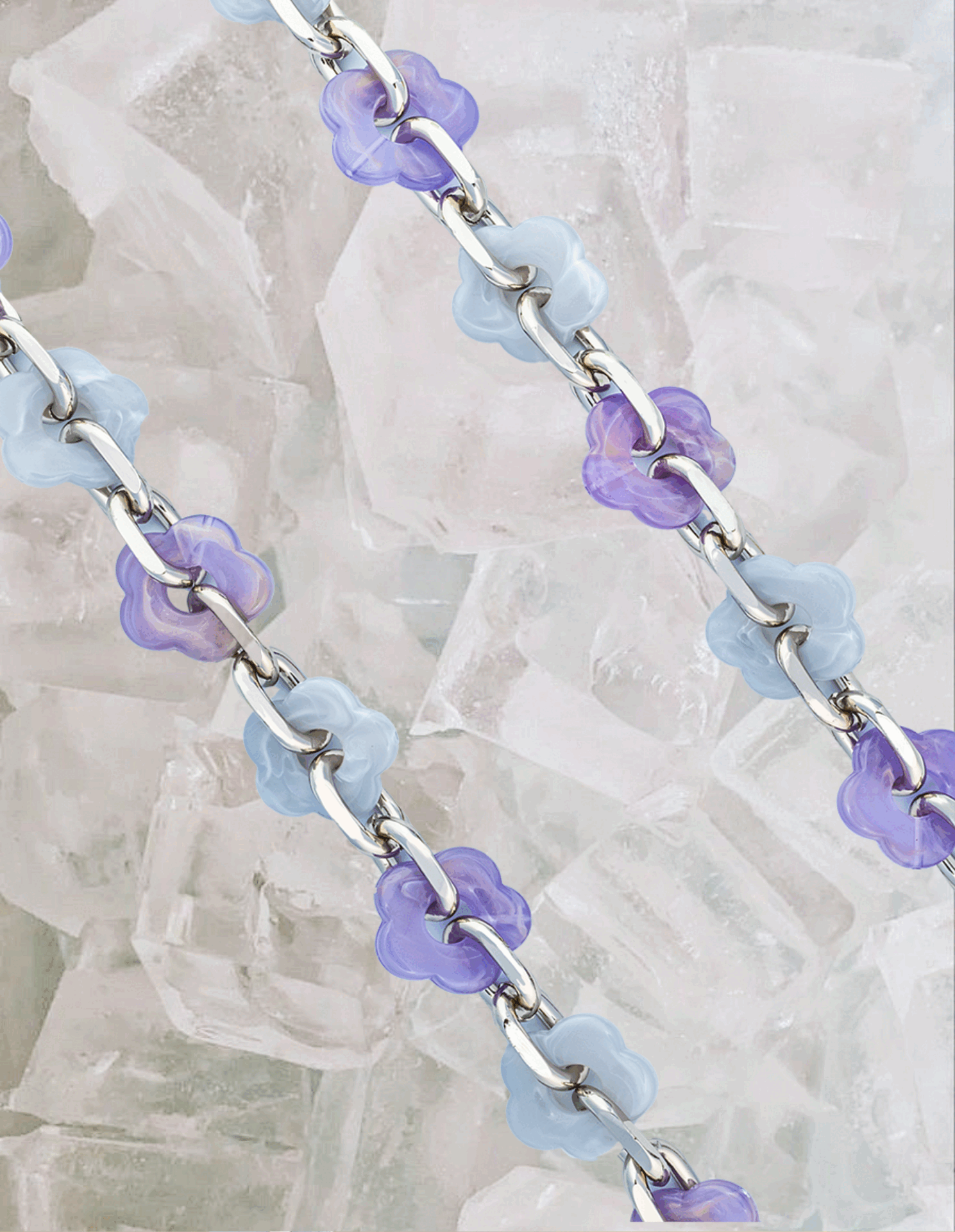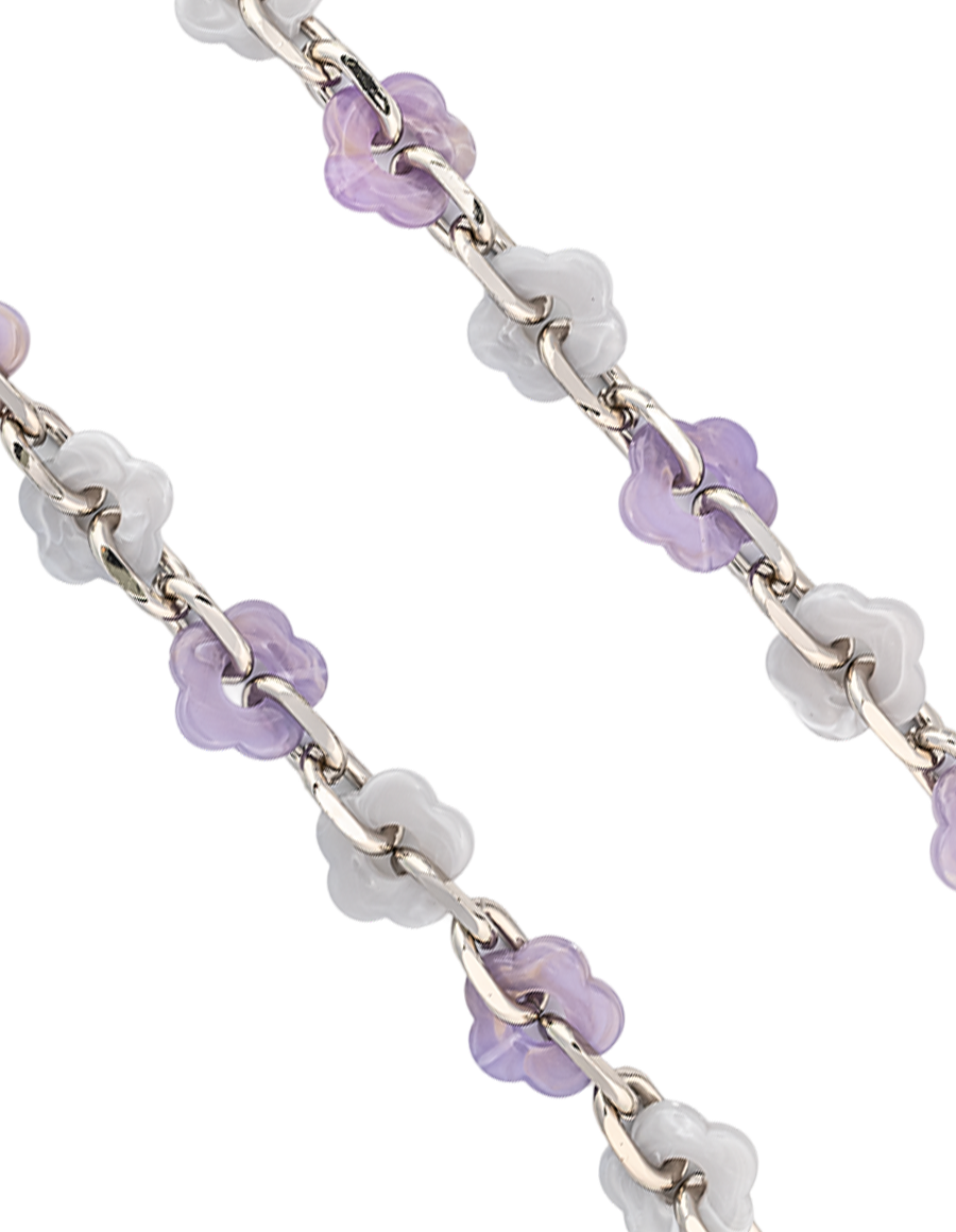 Elevate your everyday style with the LANÉJ Chain, a bold yet refined accessory crafted for versatility and chic functionality. This stylish chain features stunning marbled flower-shaped resin links, seamlessly connected by a durable gold-tone chain.