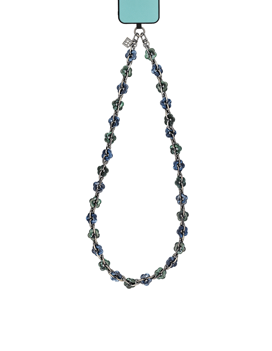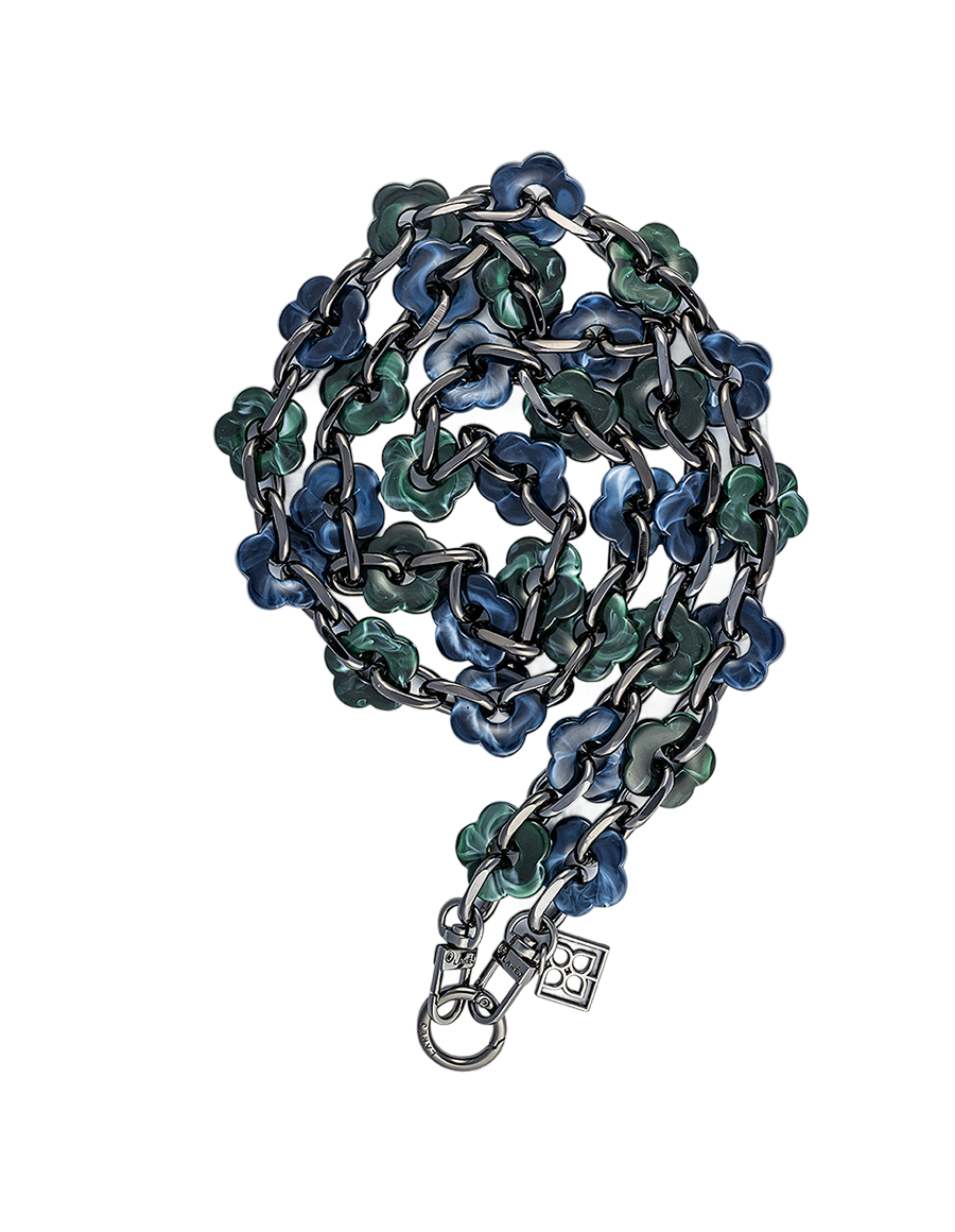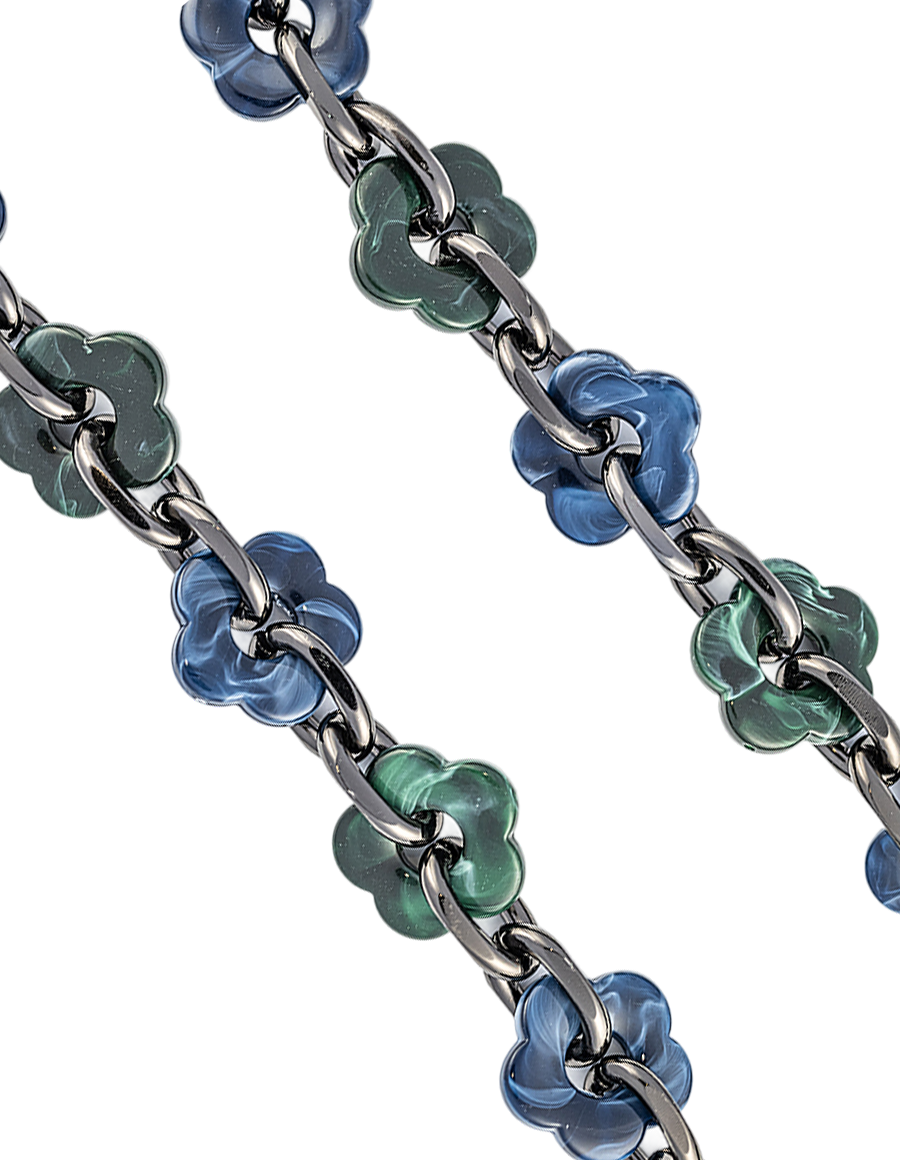 Elevate your everyday style with the LANÉJ Chain, a bold yet refined accessory crafted for versatility and chic functionality. This stylish chain features stunning marbled flower-shaped resin links, seamlessly connected by a durable gold-tone chain.