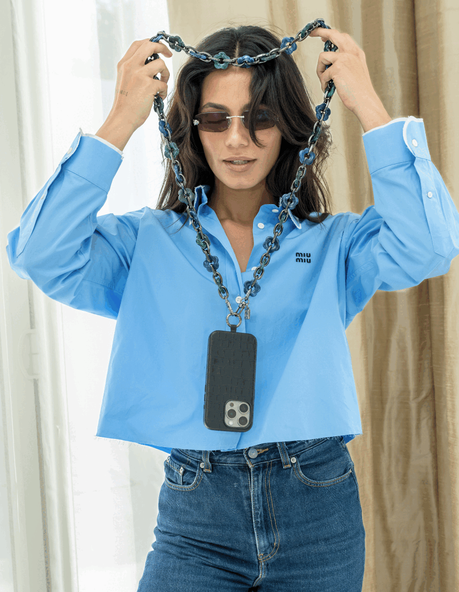 Designed to clip effortlessly onto your phone, or bag, it’s the perfect hands-free solution whether you're running errands, traveling, shopping, or stepping out for a night on the town. With its unique design and strong hardware, the LANÉJ Chain delivers both fashion and practicality in one elegant piece.