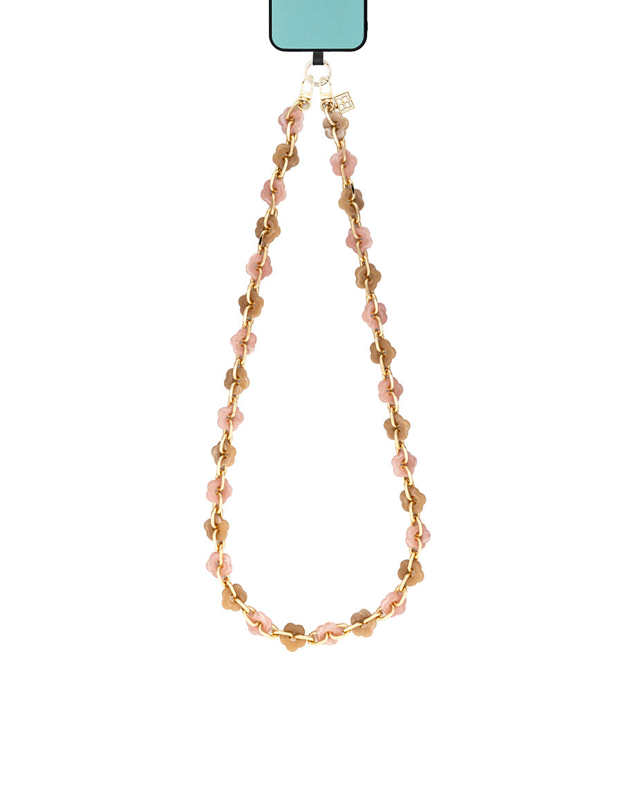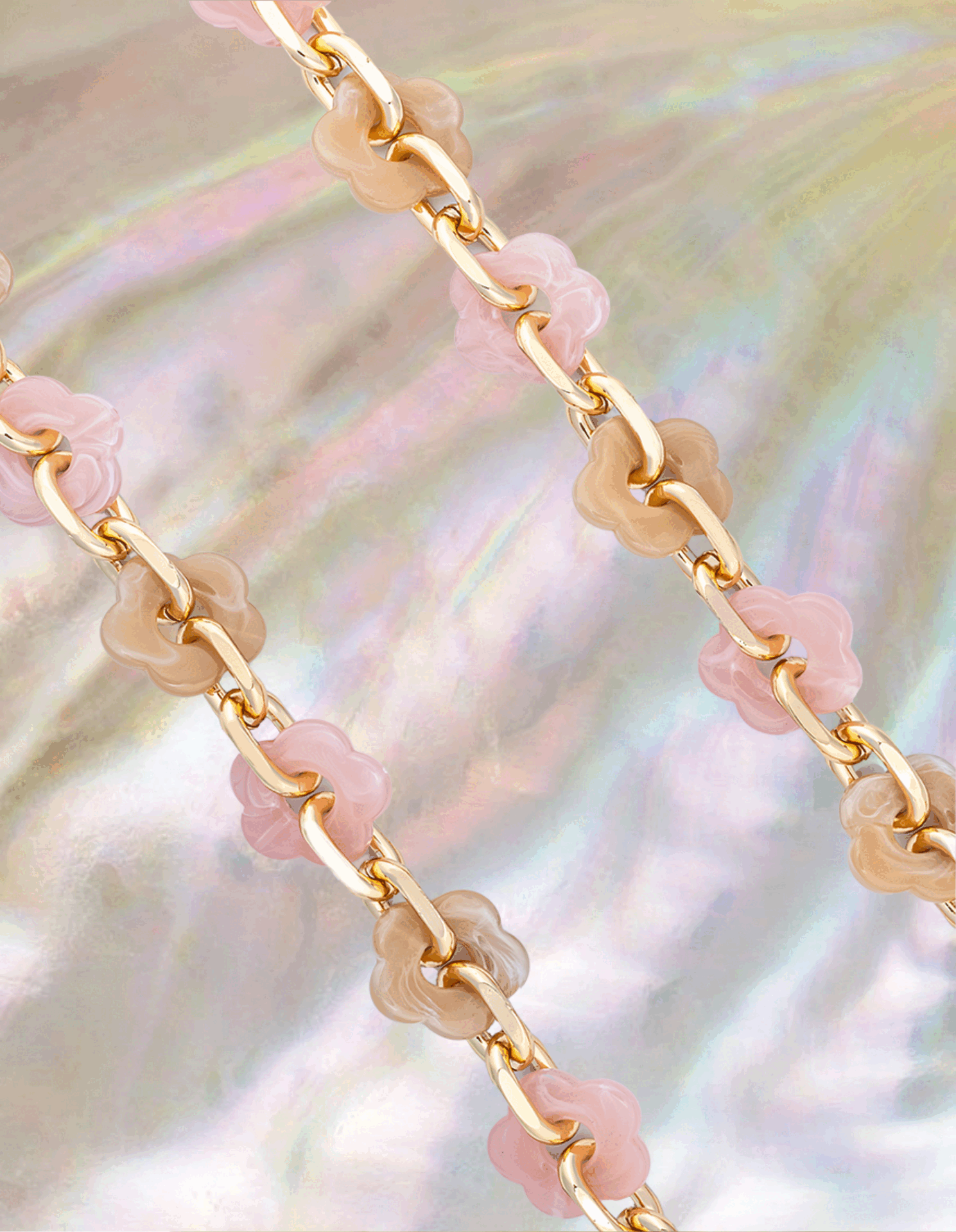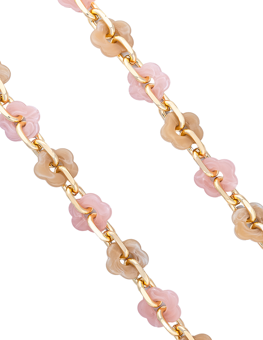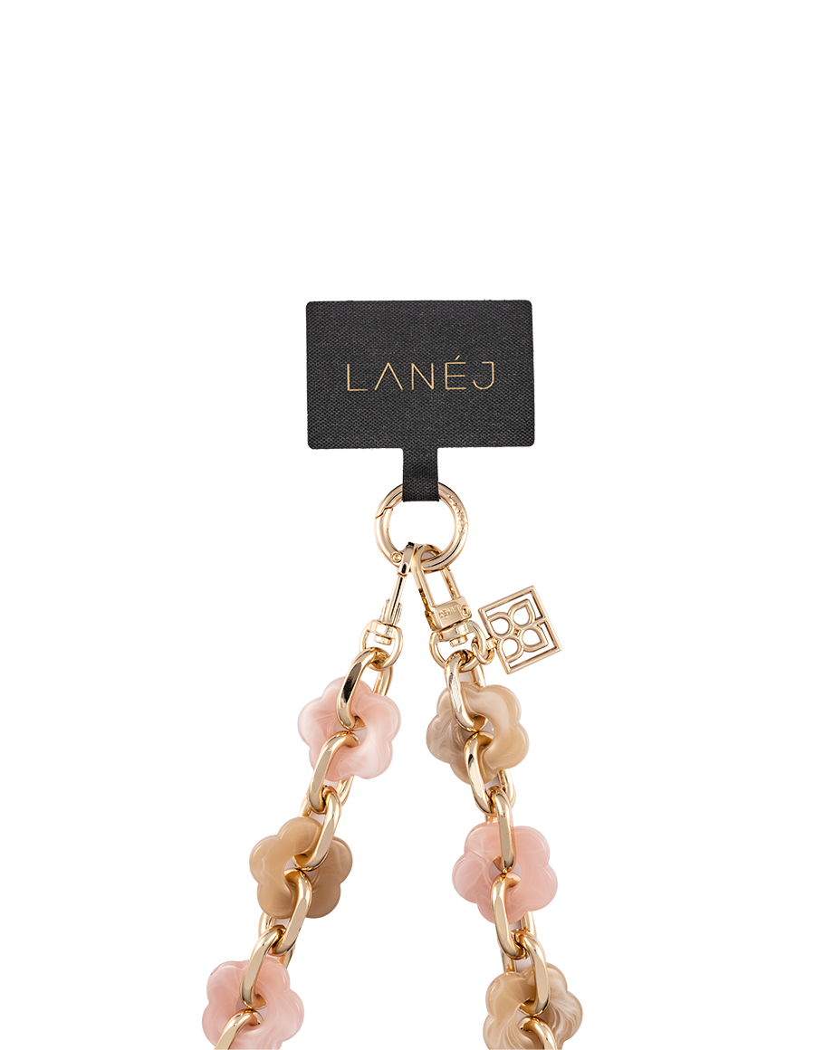Elevate your everyday style with the LANÉJ Chain, a bold yet refined accessory crafted for versatility and chic functionality. This stylish chain features stunning marbled flower-shaped resin links, seamlessly connected by a durable gold-tone chain.