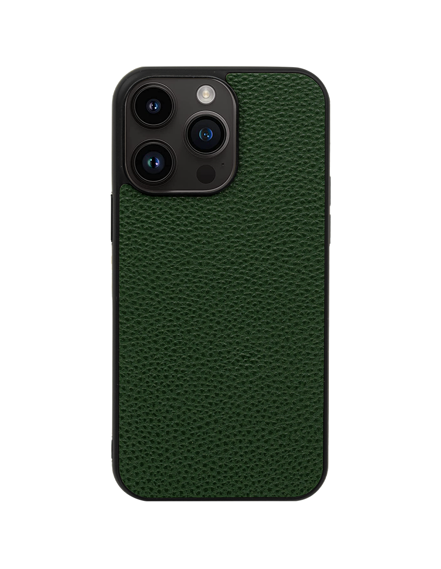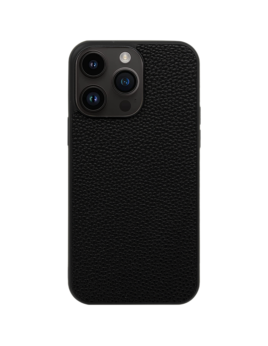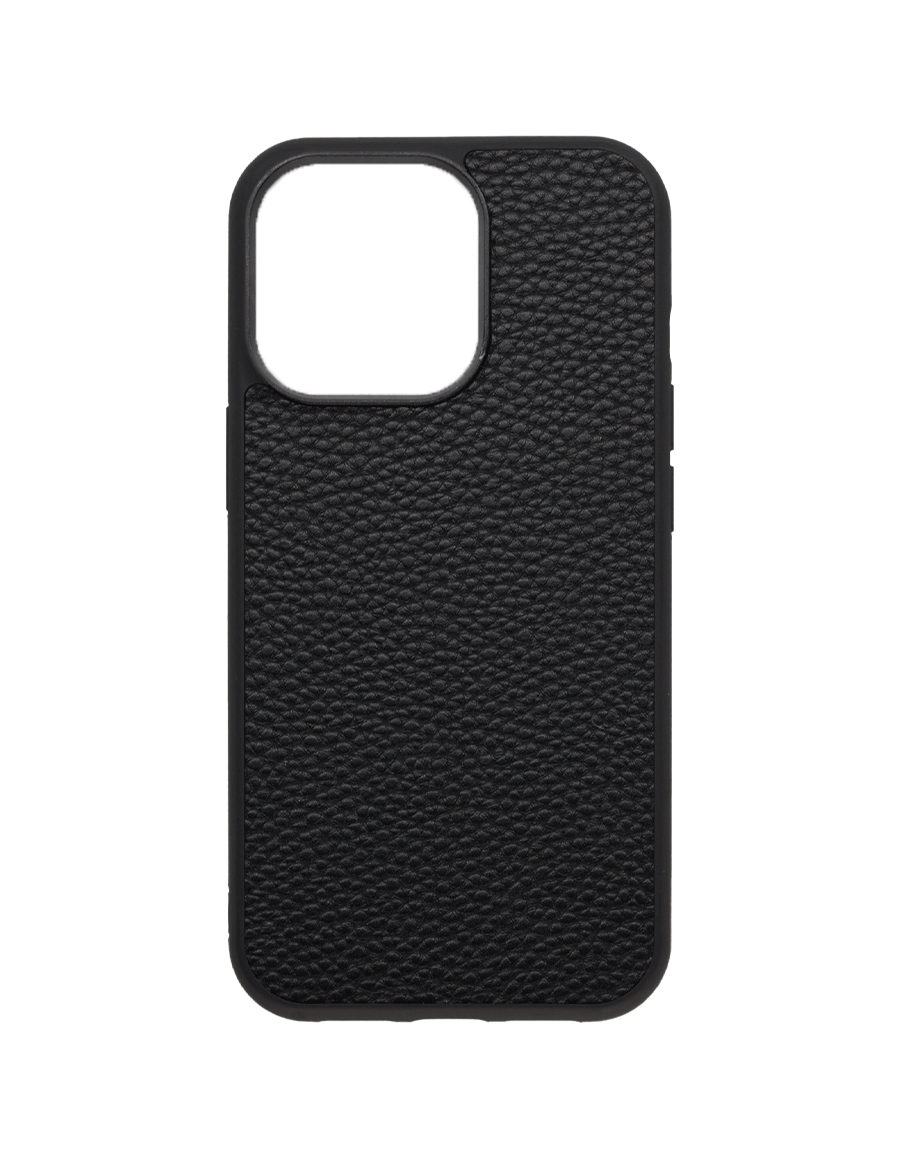 A phone hugging case offering protection and style for everyday use, featuring a matte black frame and a gorgeous cross hatch leather finish. Pebbled leather is a popular soft grain leather which is very soft to touch.